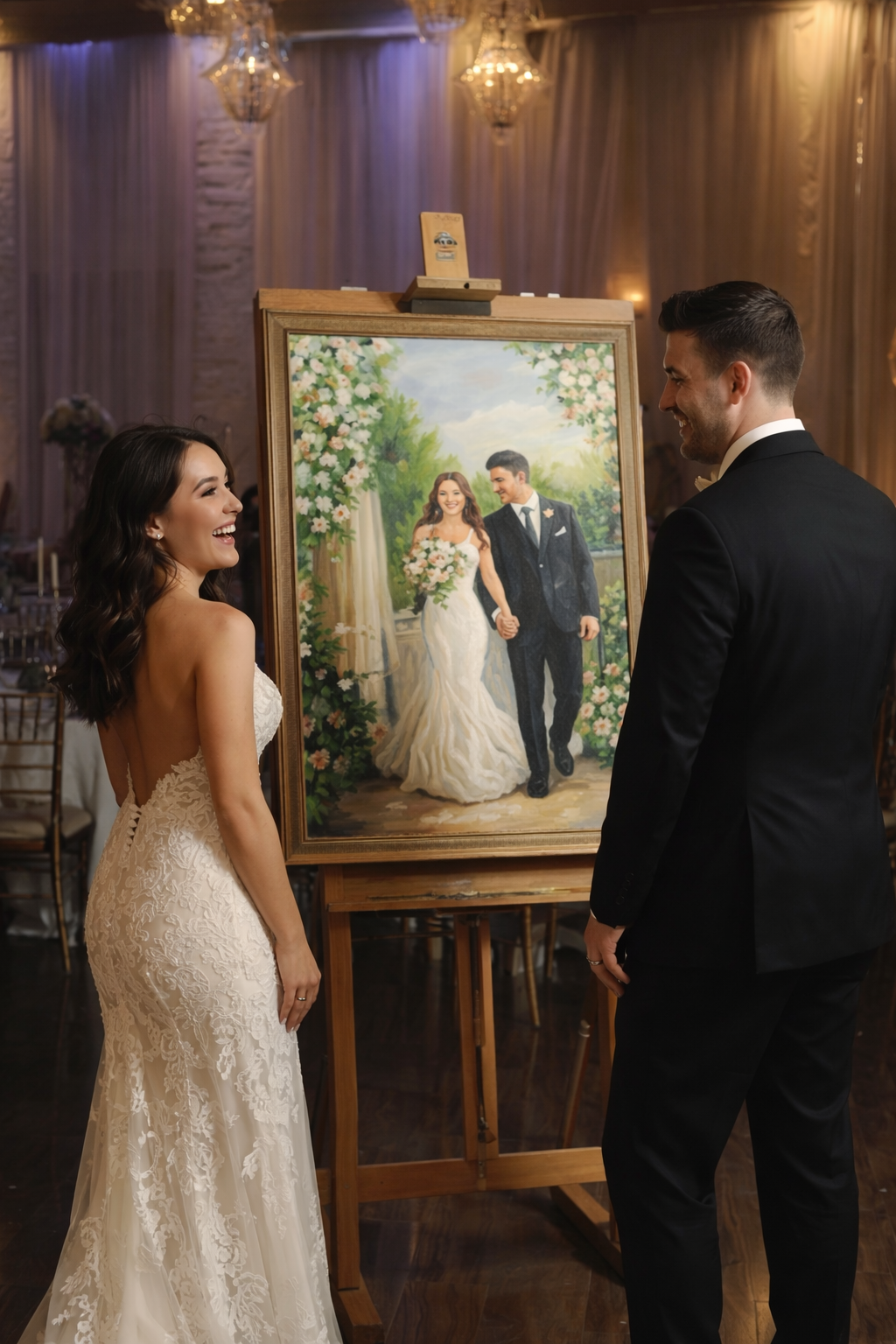 When the bride and groom finally see the finished piece, often for the first time together, the reaction is unguarded and genuine. It’s a moment of recognition — a realization that something special and fleeting has been made permanent. Their story, preserved while it was still being lived.