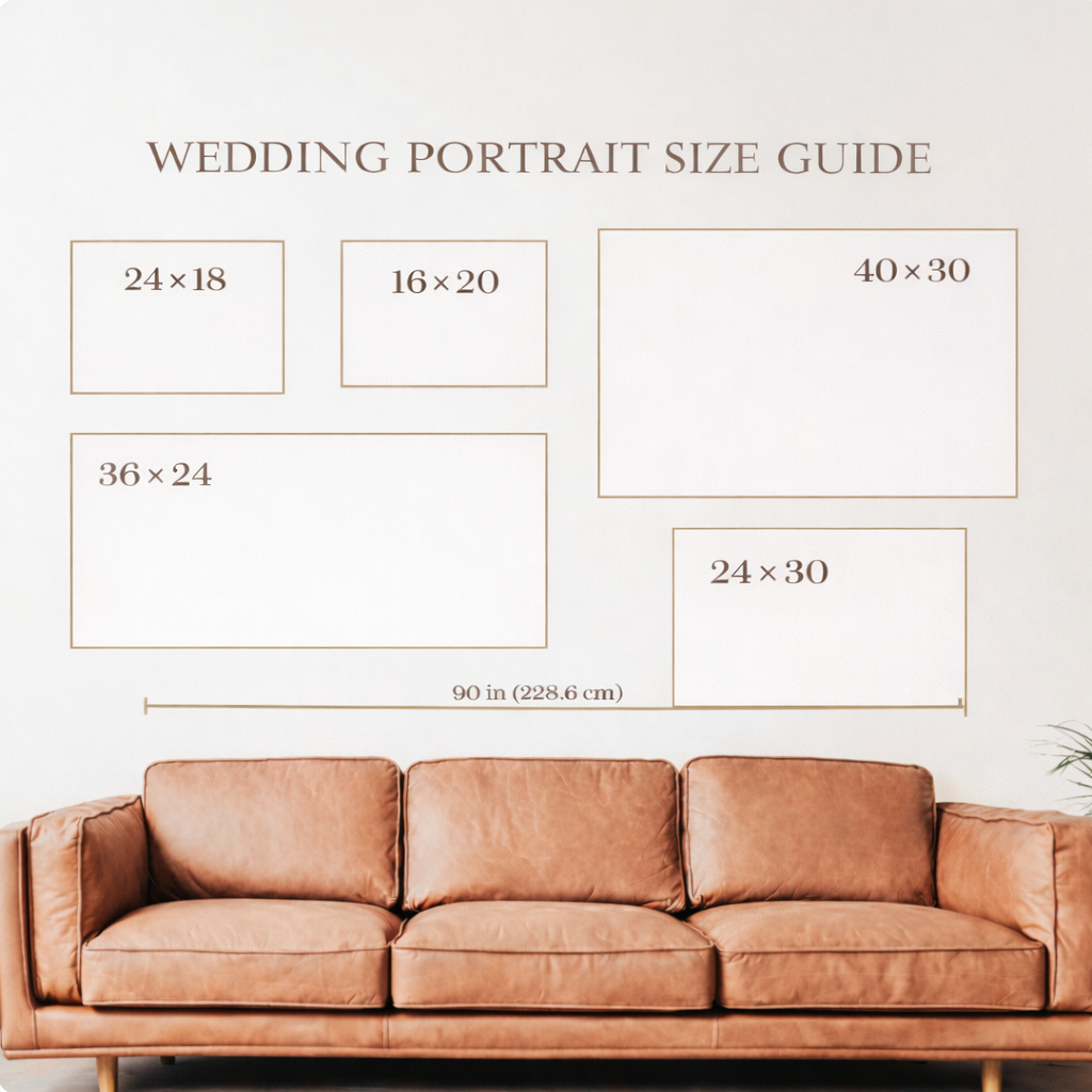 Heirloom painting packages are offered in curated size options, each designed to support a different level of detail, scale, and storytelling. All packages inclued on-site creation during your wedding day and studio refinement to achieve a polished, heirloom-quality finish.