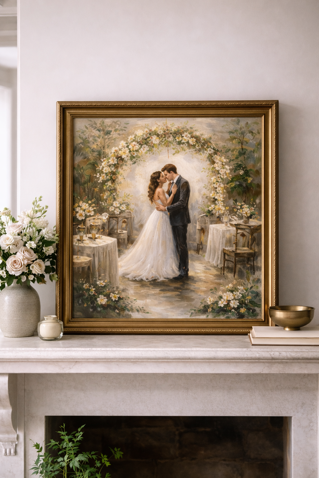 This experience is especially meaningful for couples who appreciate fine art and love the idea of turning their wedding into something they can live with and enjoy long after the day has passed. The focus is on creating something enduring — a painting that holds both emotional and artistic value that can be cherished for generations.